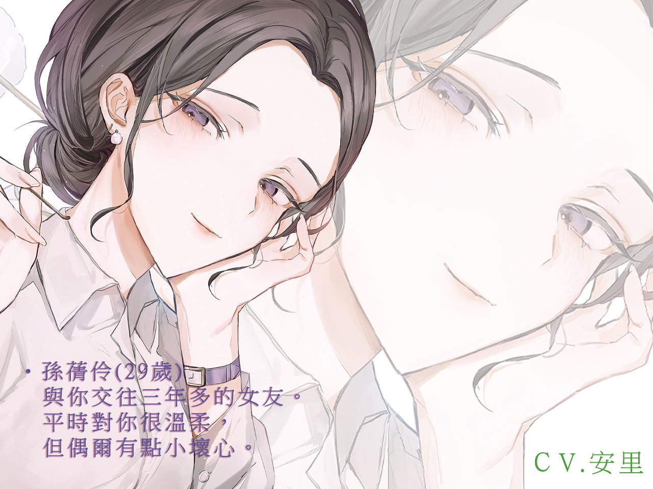 與你交往三年多的女友。平時對你很溫柔,但偶爾有點小壞心。