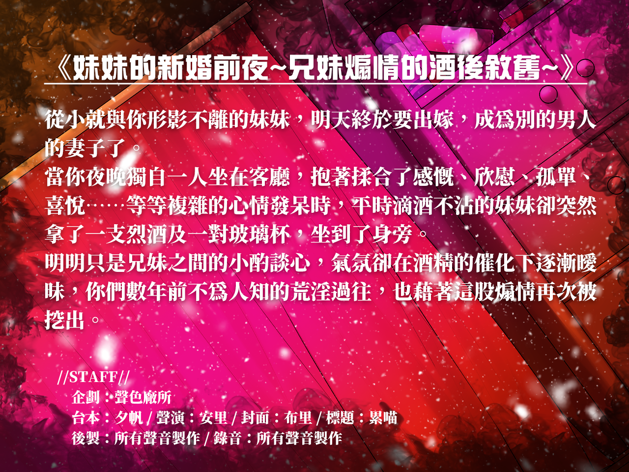 ◆內容包含:作品本體wav/mp3檔、台本、封面圖片檔