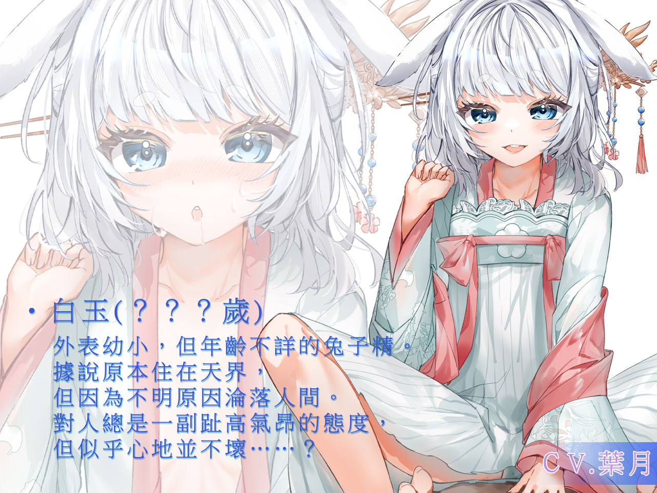 外表幼小,但年齡不詳的兔子精。據說原本住在天界,但因為不明原因淪落人間。對人總是一副趾高氣昂的態度,但似乎心地並不壞……?