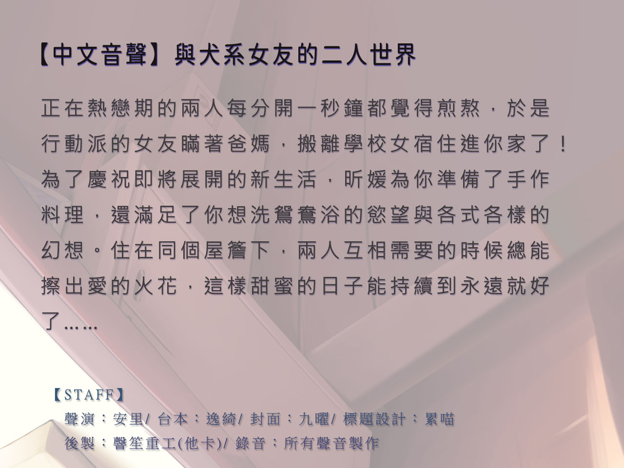 正在熱戀期的兩人每分開一秒鐘都覺得煎熬,於是行動派的女友瞞著爸媽,搬離學校女宿住進你家了!為了慶祝即將展開的新生活,昕媛為你準備了手作料理,還滿足了你想洗鴛鴦浴的慾望與各式各樣的幻想。住在同個屋簷下,兩人互相需要的時候總能擦出愛的火花,這樣甜蜜的日子能持續到永遠就好了……