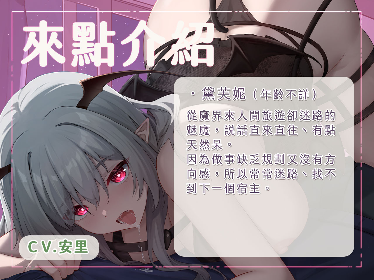 從魔界來人間旅遊卻迷路的魅魔,說話直來直往、有點天然呆。因為做事缺乏規劃又沒有方向感,所以常常迷路、找不到下一個宿主。