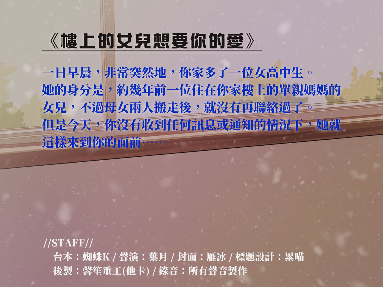 ◆內容包含:作品本體wav/mp3檔、台本、封面圖片檔