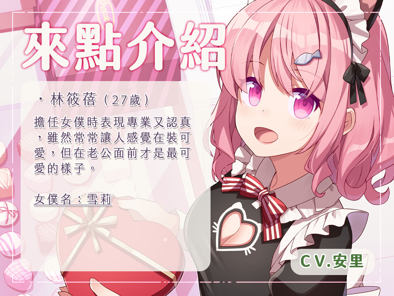 你是一家巧克力專賣店的老闆,與老婆兼看版娘兼店員女僕,一起經營著。